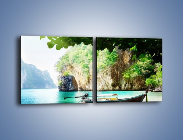 Obraz na płótnie – Łódeczka przy roślinnym klifie – dwuczęściowy kwadratowy poziomy KN582