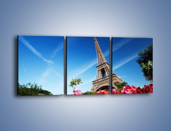 Obraz na płótnie – Wieża Eiffla pod błękitnym niebem – trzyczęściowy AM379W2