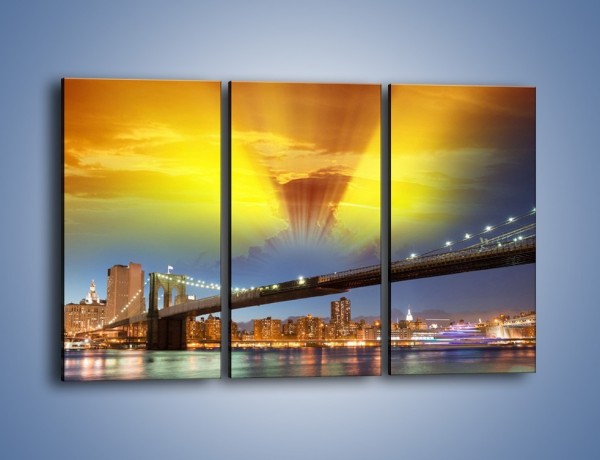 Obraz na płótnie – Most Brookliński o zachodzie słońca – trzyczęściowy AM535W2
