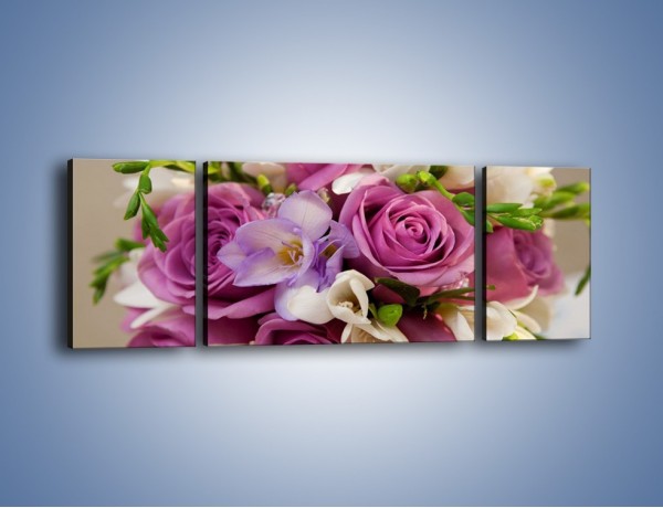 Obraz na płótnie – Piękna wiązanka z lila róż – trzyczęściowy K034W5